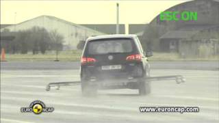 This is verified with two additional criteria that determine the yaw-rate after the steering manoeuvre is completed. They may be only a small percentage of the maximum yaw-rate during the steering manoeuvre to ensure that the car will follows a straight path after the steering input. In the first series of tests, Euro NCAP has verified the ESC performance of car models that were crash-tested in the 2009 and 2010 programme. For cars that allowed the ESC system to be switched off, tests were carried out with ESC ON and OFF.