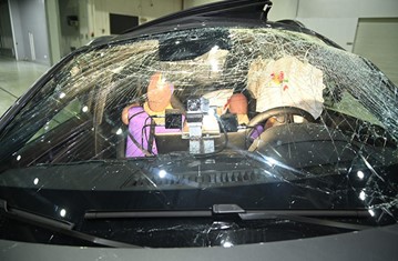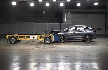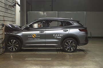 The passenger compartment of the SEAL-U remained stable in the frontal offset test. Dummy numbers showed good protection of the knees and femurs of both the driver and passenger. BYD showed that a similar level of protection would be provided to occupants of different sizes and to those sitting in different positions. Protection of the front seat passenger was good for all critical body areas. Analysis of the deceleration of the impact trolley during the test, and analysis of the deformable barrier after the test, revealed that the SEAL-U would be a moderately benign impact partner in a frontal collision. In the full-width rigid barrier test, protection of all critical body areas was good or adequate for the driver and good for all body areas of the rear passenger. In both the side barrier test and the more severe side pole impact, protection of all critical body areas was good and the SEAL-U scored maximum points in this part of the assessment. Control of excursion (the extent to which a body is thrown to the other side of the vehicle when it is hit from the far side) was adequate. The SEAL-U has a counter-measure to mitigate against occupant to occupant injuries in such impacts and this performed well in the side pole impact. Tests on the front seats and head restraints demonstrated good protection against whiplash injuries in the event of a rear-end collision. A geometric analysis of the rear seats indicated marginal whiplash protection. The SEAL-U has an advanced eCall system which alerts the emergency services in the event of a crash. The car also has a system which applies the brakes after an impact, to avoid secondary collisions. BYD demonstrated that if the car entered water the doors, if locked, could be opened within two minutes of power being lost and a hammer is provided to allow side windows to be broken to allow escape.