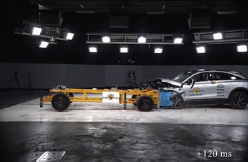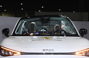 The passenger compartment of the #3 remained stable in the frontal offset test. Dummy numbers showed good protection of the knees and femurs of both the driver and passenger. smart showed that a similar level of protection would be provided to occupants of different sizes and to those sitting in different positions. Analysis of the deceleration of the impact trolley during the test, and analysis of the deformable barrier after the test, revealed that the #3 would be a benign impact partner in a frontal collision. In the full-width rigid barrier test, protection of all critical body areas was good for the driver and good or adequate for the rear passenger. In the side barrier test, protection of all critical body areas was good and the #3 scored maximum points in this part of the assessment. In the more severe side pole impact, protection was good or adequate for all critical parts of the body. Control of excursion (the extent to which a body is thrown to the other side of the vehicle when it is hit from the far side) was marginal. The #3 has a counter-measure to mitigate against occupant to occupant injuries in such impacts. In Euro NCAP’s test, the heads of the driver and front passenger hit each and the protection was rated as poor. Tests on the front seats and head restraints demonstrated good protection against whiplash injuries in the event of a rear-end collision. A geometric analysis of the rear seats also indicated good whiplash protection. The #3 has an advanced eCall system which alerts the emergency services in the event of a crash. The car also has a system which applies the brakes after an impact, to avoid secondary collisions. smart demonstrated that if the car entered water the doors, if locked, could be opened within two minutes of power being lost but not that electric windows would remain functional long enough to allow occupants to escape.