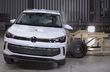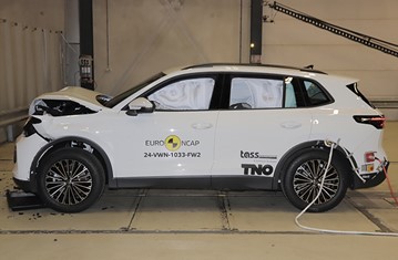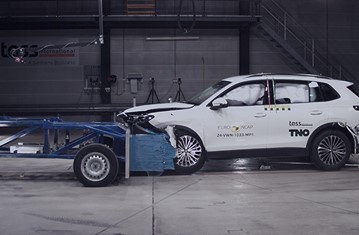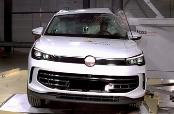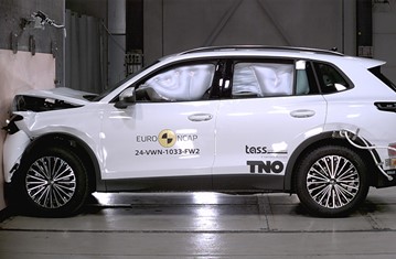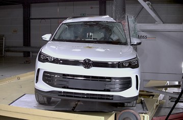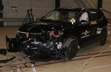 The passenger compartment of the Volkswagen Tiguan remained stable in the frontal offset test. Dummy numbers showed good protection of the knees and femurs of both the driver and passenger. Volkswagen showed that a similar level of protection would be provided to occupants of different sizes and to those sitting in different positions. Protection was good for all critical body areas of the passenger. Analysis of the deceleration of the impact trolley during the test, and of the deformable barrier after the test, revealed that the Tiguan would be an aggressive impact partner in a frontal collision. In the full-width rigid barrier test, chest protection of the rear passenger was rated as marginal, based on dummy readings of compression. Moreover, analysis of the dummy readings in the pelvis showed evidence of a phenomenon known as ‘submarining’. This can lead to abdominal injuries and the score was penalised, with protection rated as poor for that body region. In the side barrier test, dummy numbers showed good protection of all critical body areas. However, a post-test inspection revealed a tear of approximately 30mm in the curtain airbag. The score for head protection was penalised and protection of this area reduced to ‘adequate’. The same penalty was applied in the side pole impact, although the issue was not observed in that test. Control of excursion (the extent to which a body is thrown to the other side of the vehicle when it is hit from the far side) was adequate. The Tiguan has a centre airbag mounted on the driver’s seat to mitigate against occupant to occupant injuries in such impacts. Dummy numbers were good in Euro NCAP's test, with equal protection to the front driver and passenger. Tests on the front seats and head restraints demonstrated good protection against whiplash injuries in the event of a rear-end collision. A geometric analysis of the rear seats indicated marginal whiplash protection. The Tiguan has an advanced eCall system which alerts the emergency services in the event of a crash. The car also has a system which applies the brakes after an impact, to avoid secondary collisions. Volkswagen demonstrated that if the car entered water, the doors, if locked, could be opened within two minutes of power being lost and that electric windows would remain functional long enough to allow occupants to escape.