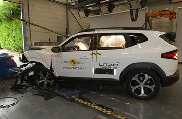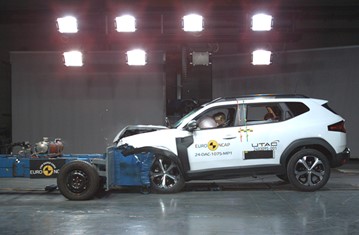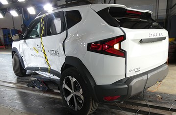 The passenger compartment of the Duster remained stable in the frontal offset test. Dummy numbers showed good protection of the knees and femurs of both the driver and passenger. Dacia demonstrated that a similar level of protection would be provided to occupants of different sizes and to those sitting in different positions. The driver’s chest protection was rated as weak, based on dummy readings of compression during the test. Analysis of the deceleration of the impact trolley during the test, and analysis of the deformable barrier after the test, revealed that the Duster would be a benign impact partner in a frontal collision. In the full-width rigid barrier test, protection was rated as marginal for the chest of the driver and rear passenger, based on dummy readings of compression. In both the side barrier test and the more severe side pole impact, protection of all critical body areas was good and the Duster scored maximum points in this part of the assessment. Dacia did not provide evidence to demonstrate the degree to which the Duster would control excursion (the extent to which a body is thrown to the other side of the vehicle when it is hit from the far side). In addition, the Duster has no countermeasure to mitigate head to head contact between the front seat occupants, so far-side protection was rated as poor. Tests on the front seats and head restraints demonstrated good protection against whiplash injuries in the event of a rear-end collision. A geometric analysis of the rear seats also indicated good whiplash protection. The Duster has an advanced eCall system which alerts the emergency services in the event of a crash. Dacia demonstrated that the doors could be opened in the event of power being lost due to vehicle submergence. The Duster has a system to prevent secondary impacts after the car has been in a collision.
